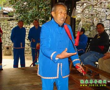 三棒鼓,唐代稱三仗鼓,約于明代傳入張家界,并逐漸成為群眾喜聞樂見的民間藝術(shù)形式。每年春節(jié),藝人們結(jié)伴走村串寨拜年,表現(xiàn)對象不分貧富,戶戶必到。如遇貧寒之家,表演者將別家贈送的禮品相送,意在人人過節(jié)歡喜。充分體現(xiàn)出土家人熱情好客,心地善良的民族性格。對加強民族間團結(jié)有一定的作用。三棒鼓 通常由三至五人組成,一人擊鼓唱詞,一人鑼鼓配樂,一人?;ò簟;ò羧L一尺,舞者左右 各執(zhí)一根,將另一根拋在空中,左右開弓,擊打空中花棒使之不落地。也有以刀代棒,以五刀代三棒的技藝。鋼刀在空中歡跳,銀光閃閃,左右穿梭。技藝高強者,突然把刀拋得及高,來一個騰空飛腳,轉(zhuǎn)身外擺,繼續(xù)接刀上拋,令人眼花繚亂,不禁稱絕。打三棒鼓,通常有“鬧春耕”、“收割打場”、“慶豐收”、“拜年節(jié)”四套,分“鯉魚跳龍門”、“玉女穿梭”、“板巖漂灘”等項目。打三棒鼓技巧性強,表演時需高度集中,用力適當,貫通一氣,并與演唱者默契配合。