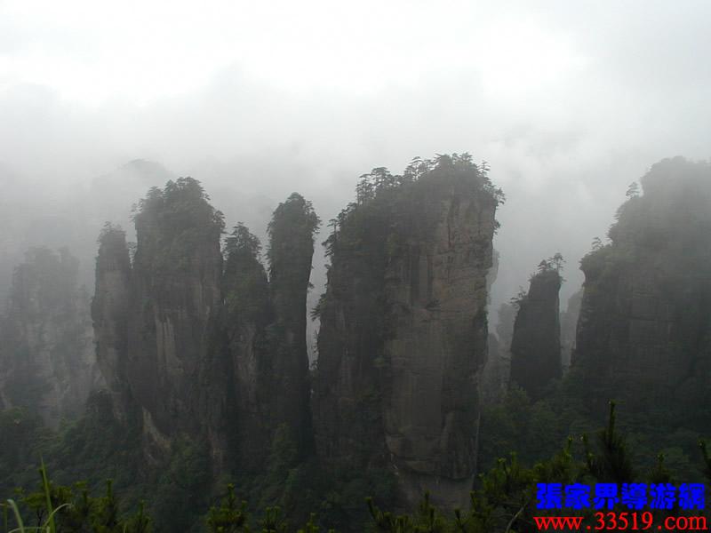 (山頂環(huán)覽線:五指峰、前花園、黑樅垴)朋友們!這里的每一座巖峰都是一件古老的藝術品,每一座巖峰都隱藏著大自然的無窮奧秘。面對如此壯美雄奇、氣象萬千的砂巖峰林風光,幾年前,一位來自東北的女作家,就站在黃石寨(黃獅寨)上感嘆道:看了張家界的風光,覺得真可以死了。接下來她又說,看了張家界的風光,覺得更有理由好好活了。兩句話看起來前后矛盾,其實不然:前一句是說能見一到像張家界這樣奇美的風光,此生足矣;后一句是說人生是如此美好,理應更加珍愛生命。大家說對不對? “人生不到張家界,百歲何能叫老翁。”