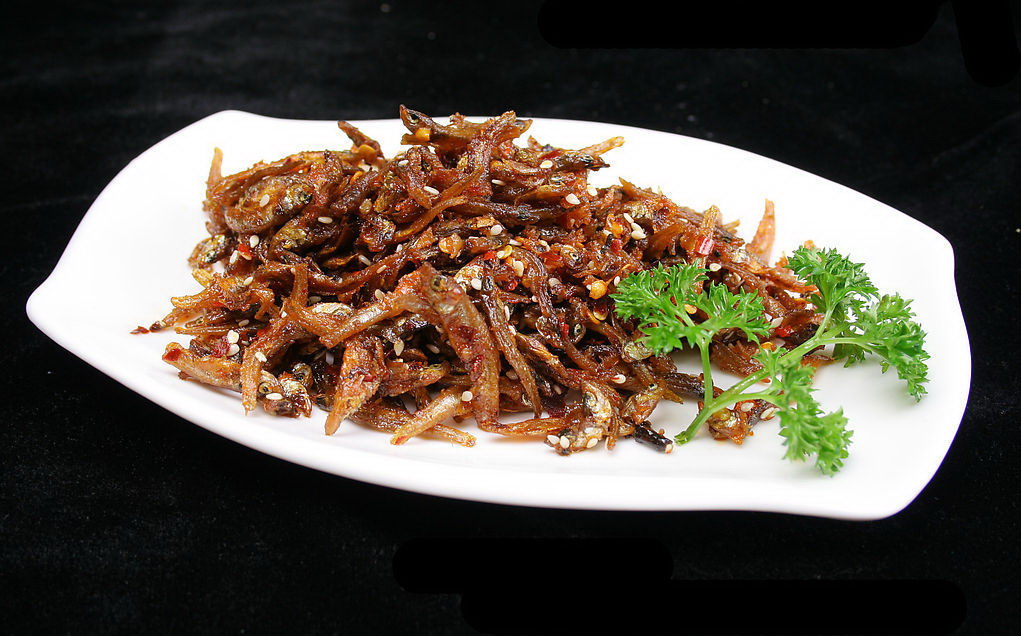 原料為小魚蝦,其中以“青皮嫩”為最佳,肉多味美,魚蝦捕撈上趁新鮮將其沖洗干凈,瀝干水,均勻地?cái)傇跓徨佔(zhàn)永铮ㄥ伾纤⒁粚佑褪顾鼈儾徽冲仯0胄r(shí)左右,這些魚蝦就已經(jīng)焙干,一側(cè)焦黃,透出薰香,再剔去肚腸,炒豆豉辣椒或?qū)⑶嘟非嗨馇屑?xì)同炒均好,味道絕美。