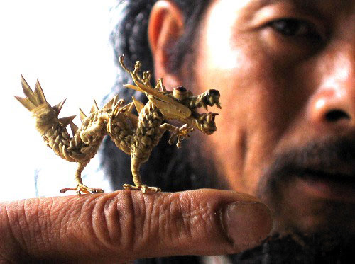長(zhǎng)沙地區(qū)的傳統(tǒng)工藝品,系用棕櫚葉編成的各種動(dòng)物,種類很多,如鳥、蟲、魚、蝦、鶴、蛇等,形象逼真,栩栩如生。曾參加德國萊比錫世界博覽會(huì),人們贊嘆它“不可思議”,法國藝術(shù)館特意收購珍藏。棕櫚為常綠喬木,望城縣湘江兩岸都有種植,藝人們采集棕葉,編織成各種小動(dòng)物,成為“江南一絕”。