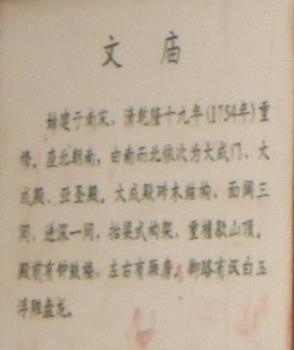 廟前面有學(xué)宮坪,亦名學(xué)坪,坪南端有大明壁。廟宇紅墻黃瓦,氣勢宏偉。正門曰奎星門,前院左右各植檜樹,常年翠綠,散發(fā)幽香。奎星門內(nèi)有月形泮池,池周護(hù)以石欄。泮池附近有石坊三座,正南石坊匾額鐫有“斯文在茲”四字,東西兩坊貫通街衢。通過石坊便是大成門。進(jìn)門左右是飛檐綠瓦的鐘鼓亭。大成門通向大成殿,有石鋪甬道直抵大殿臺基。臺高一米,全系石塊疊成。臺階分左右兩道,中有石雕盤龍,綴以云海波濤,栩栩如生,躍然石上。大成殿為歇山式重檐結(jié)構(gòu),周圍有16根圓石柱,內(nèi)外枋、檁、藻井、斗拱、扇梧均五彩施繪,黃瓦飛檐,蔚為壯觀。殿后有亞圣殿,與大成門、奎星門前后襯應(yīng),更顯出大成殿主體的雄偉。