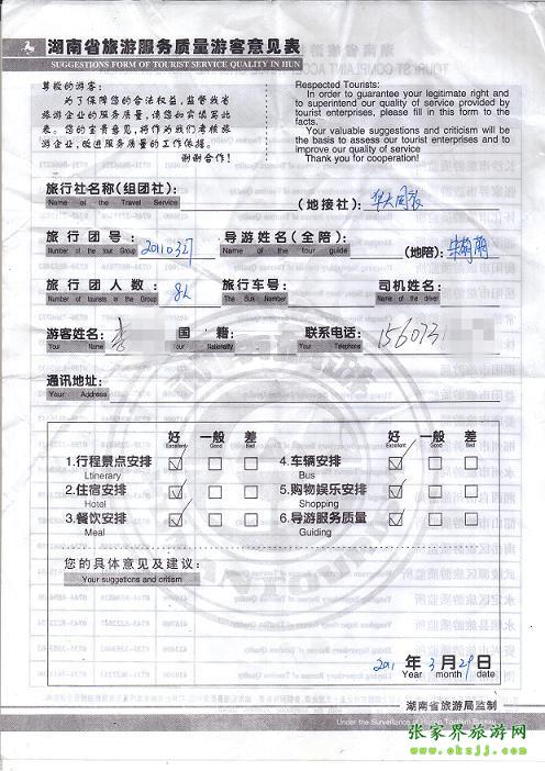 - 2011年10月26日張小姐一行18人旅游質(zhì)量反饋 [10482]