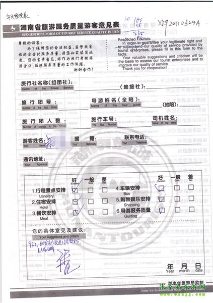 - 游客夏先生為表揚導游李姣姣寫來表揚信致我張家界... [14811]