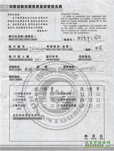 2011年6月11日秦小姐一行10人旅游質(zhì)量反饋