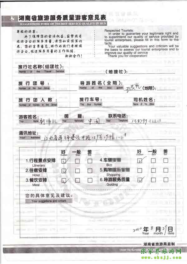 - 游客夏先生為表揚(yáng)導(dǎo)游李姣姣寫來表揚(yáng)信致我張家界... [14811]