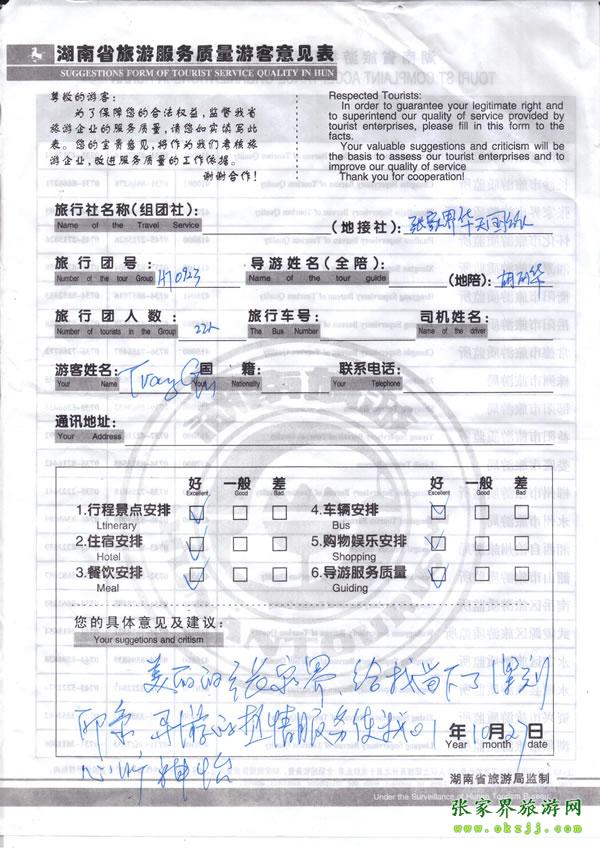 - 游客夏先生為表?yè)P(yáng)導(dǎo)游李姣姣寫來表?yè)P(yáng)信致我張家界... [14811]