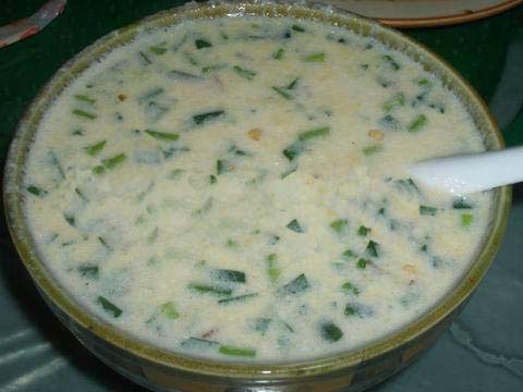 將用水浸泡過(guò)的黃豆用磨子磨碎,摻入切細(xì)的青菜葉,然后用溫火煮熟即可。此樣菜雖做法簡(jiǎn)單,但營(yíng)養(yǎng)價(jià)值極高且味鮮美,為當(dāng)?shù)厝顺S玫囊坏啦恕?/p> ■土家糍粑