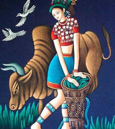 ■土家粘貼畫(huà) 介紹: 系采用樹(shù)根、樹(shù)枝、樹(shù)葉、樹(shù)皮以及砂石、草苔、布片等作為原料粘貼成人物、風(fēng)景、動(dòng)物、花草和各種不同內(nèi)容的畫(huà)幅。