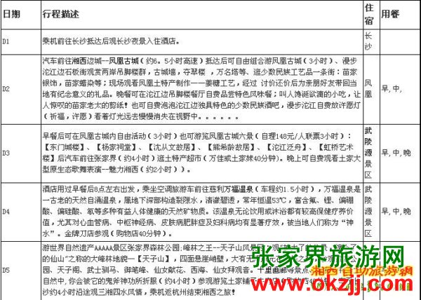 張家界五日游-經(jīng)典游程安排: